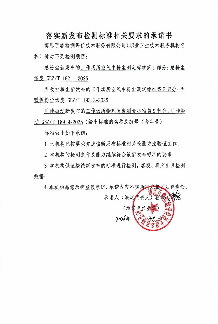 落实新发布检测标准相关要求的承诺书